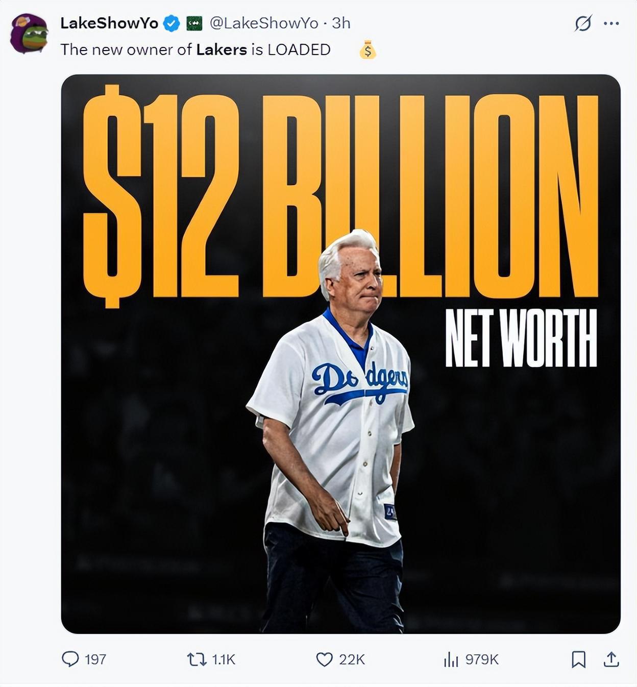 北京时间6月19日,世界体坛又出现了一件大事,洛杉矶湖人队卖了100亿美元,巴斯家族已与多元化控股公司TWG Global的CEO兼董事长马克-沃尔特达成协议,将以约100亿美元估值出售洛杉矶湖人队的大部分股权(约85%股权)。